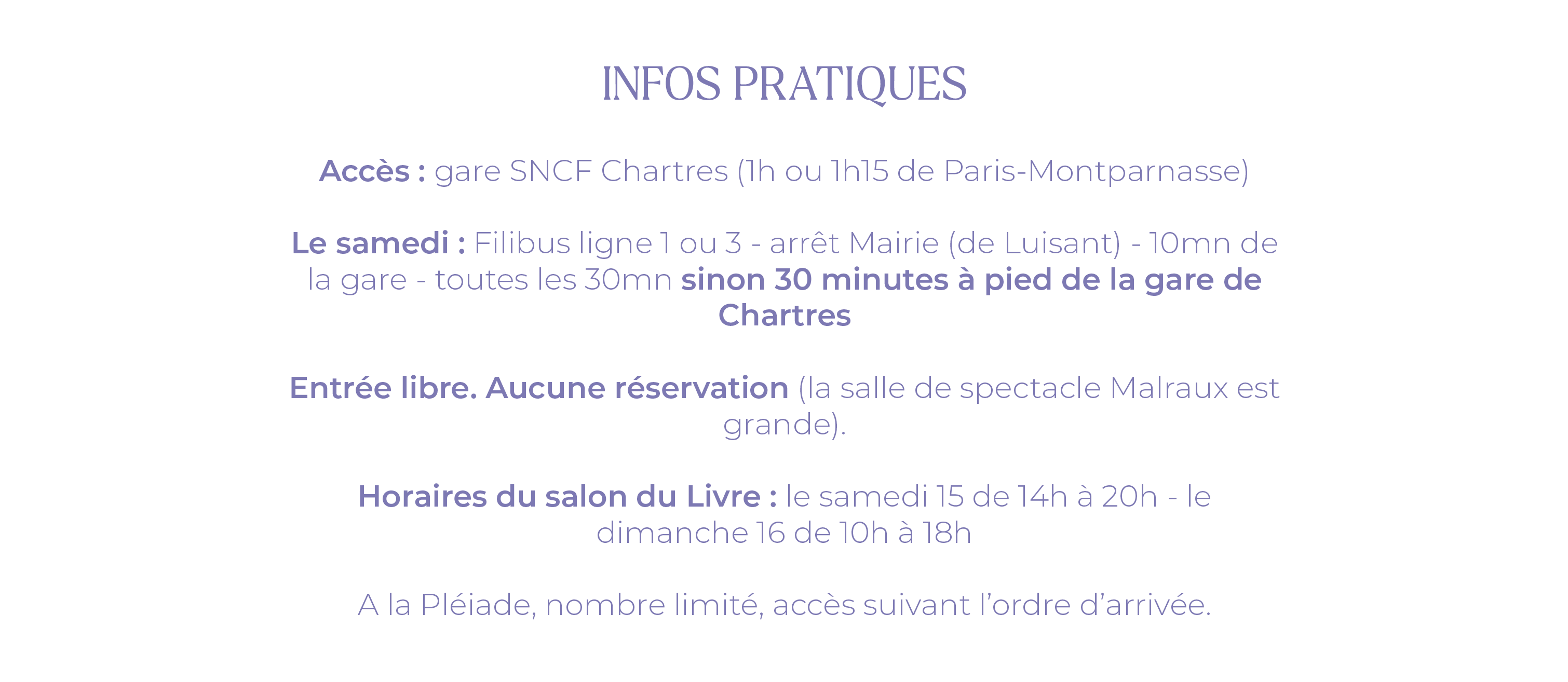 Avec Julia Alimasi, Anne Aumond, Baran Suer, Jean-Jacques Barbette, Nezha Lakhal-Chevé, Lise Dambrin, Pascal Fauliot, Patrick Fischmann, Béatrice Monnet, Abbi Patrix, Eléonore Vuarnesson. Le samedi 15 2025 15h30 et à 17h Salle La Pléiade Le dimanche 16 2025 10h00 Au marché place Charlemagne Impromptus contes et musique avec les artistes de la Cie Hamsa et les conteuses de l’atelier du Légendaire Improvisations par les élèves de la Ligue d’Impro de Chartres Le dimanche 16 2025 14h30 Salle Malraux Public familial à partie de 7 ans – entrée libre - durée 1h