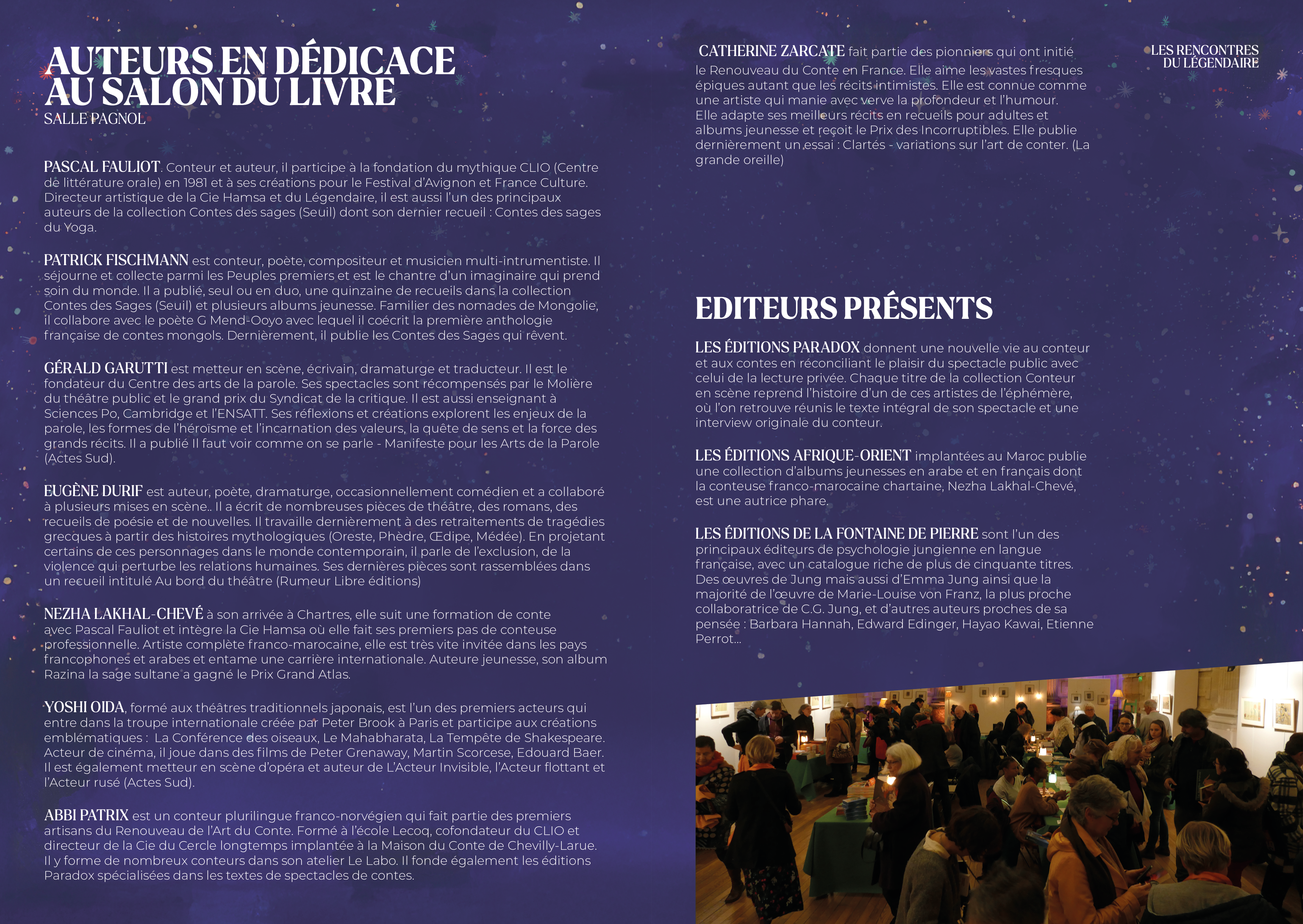 2 JOURS DE DÉDICACES Précédent ARCHIVES - LE LÉGENDAIRE 2023 Plus récent Masterclass Contes & Musique - Pascal Fauliot, Jean Jacques Barbette - 01/12/2024 Vous aimerez aussi 6 SPECTACLES 19 octobre 2020 INVITÉS 6 octobre 2020 1 CONFÉRENCE CONTÉE 28 septembre 2023